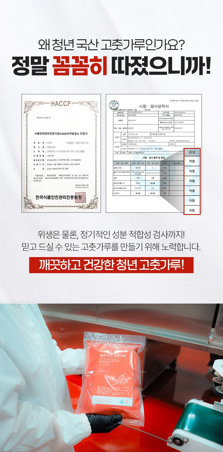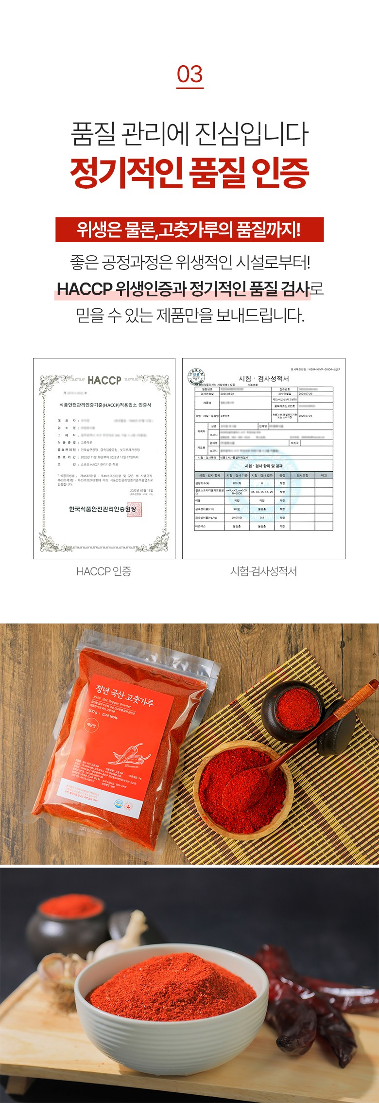| 품목 또는 명칭 | 전라도청년 청년고춧가루 국산 매운맛 굵은가루 | 포장단위별 내용물의 용량(중량),수량,크기 | 1kg,1개 |