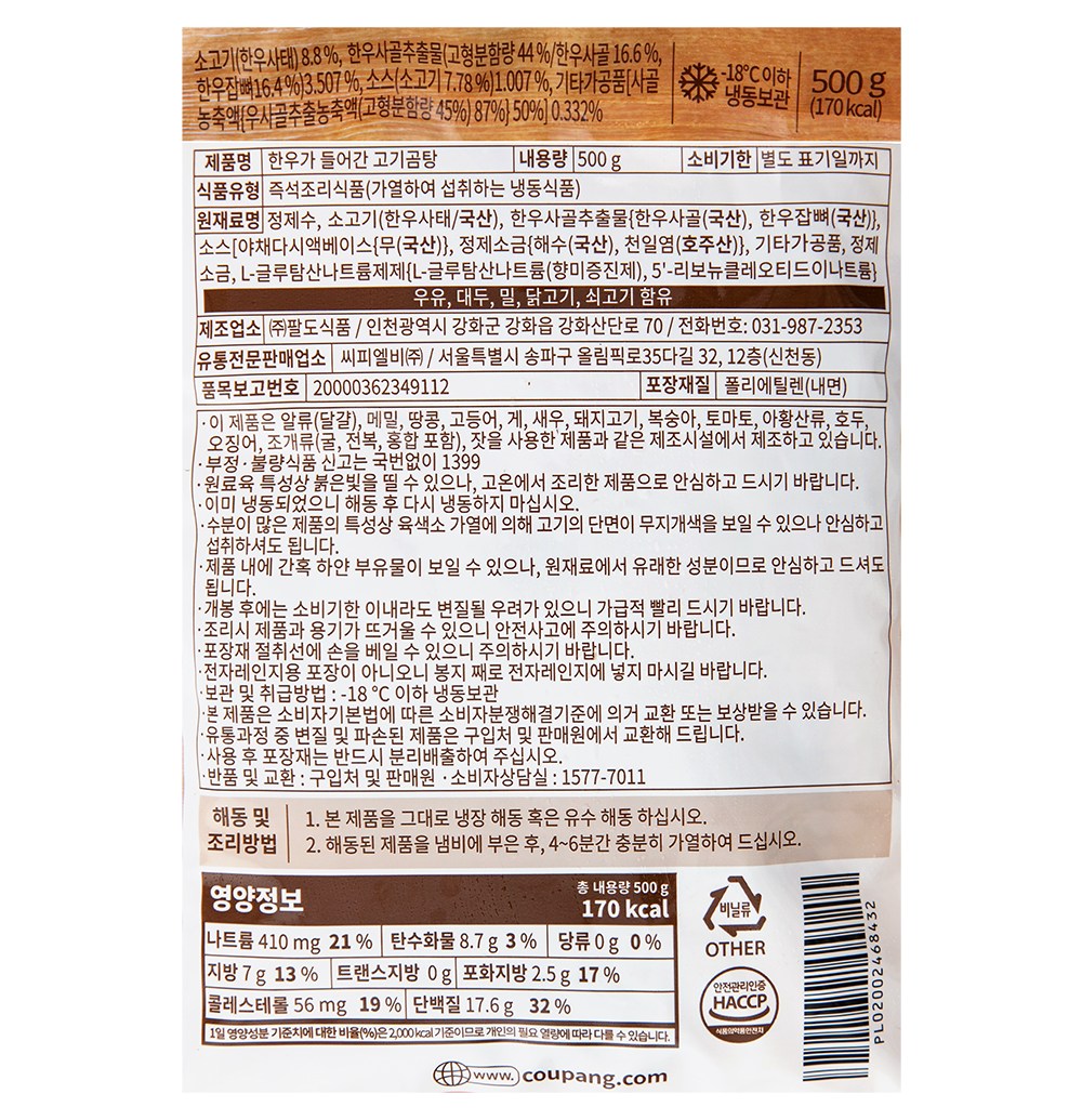 | 제품명 | 한우가 들어간 고기곰탕 | 식품의 유형 | 즉석조리식품 |