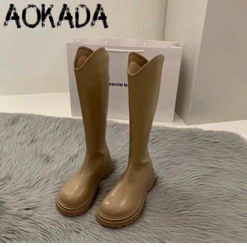 AOKADA 롱부츠 베이직 뒷지퍼 여성 부츠 5CM 통굽롱부츠