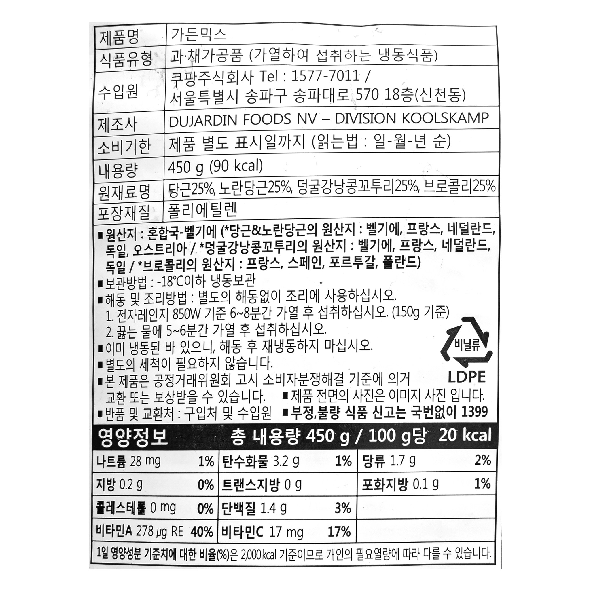 콩깍지라고도 불리는 덩굴강낭콩꼬투리를 포함해 4종의 채소를 담은 가든믹스예요. 당근, 노란당근, 브로콜리까지 손질되어 있죠. 해동이나 세척 없이 조리할 수 있어 간편해요. 끓는 물에 데친 후 웜샐러드를 만드셔도 좋고요. 달달 볶아 가니시를 만드셔도 맛있어요.