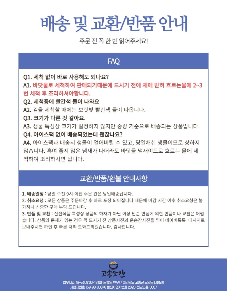 통신판매업 신고번호 | 2020-전남고흥-0007 | 사업자번호 | 159-98-00876 |