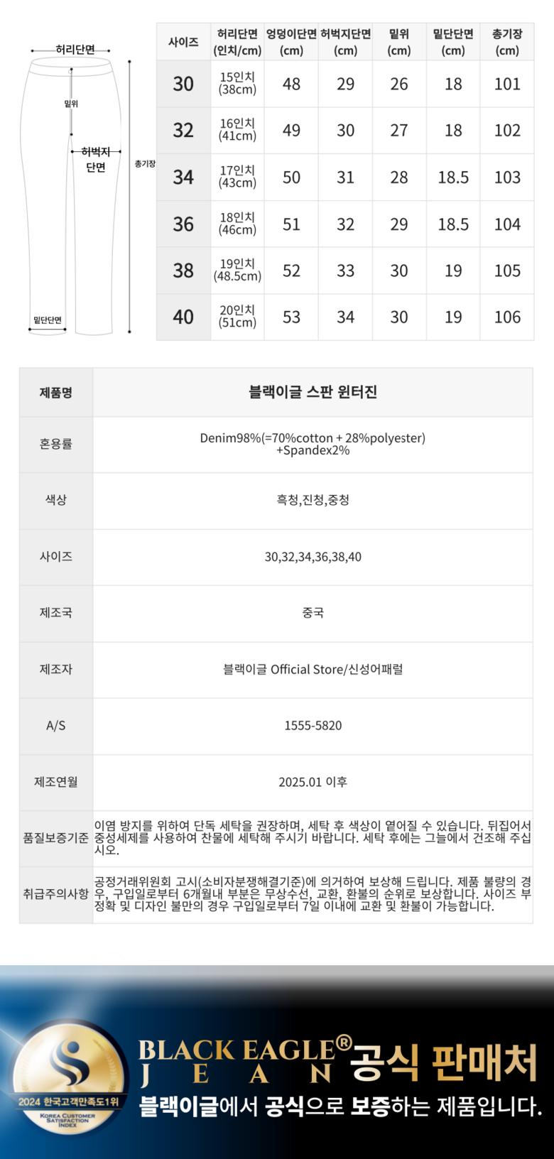 | 치수 | 30,32,34,36,38,40(inch) | 제조자(수입자) | BlackEagle(블랙이글)/신성어패럴(블랙이글코리아) |