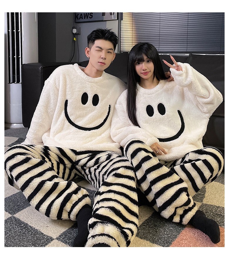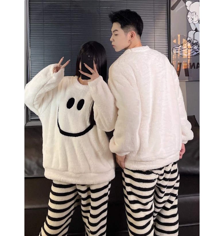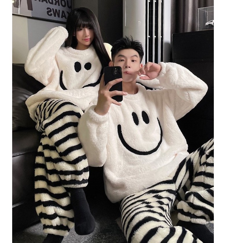 하모리 보들보들 부드러운 따뜻한 극세사 커플 파자마 두툼한 겨울 방한 보온 상하의 잠옷 세트