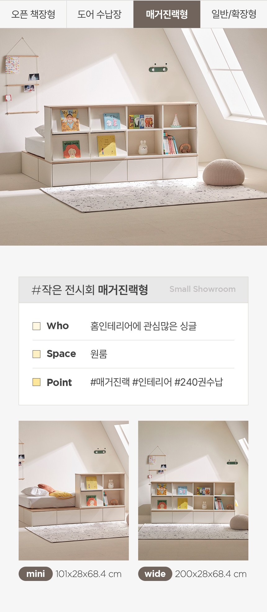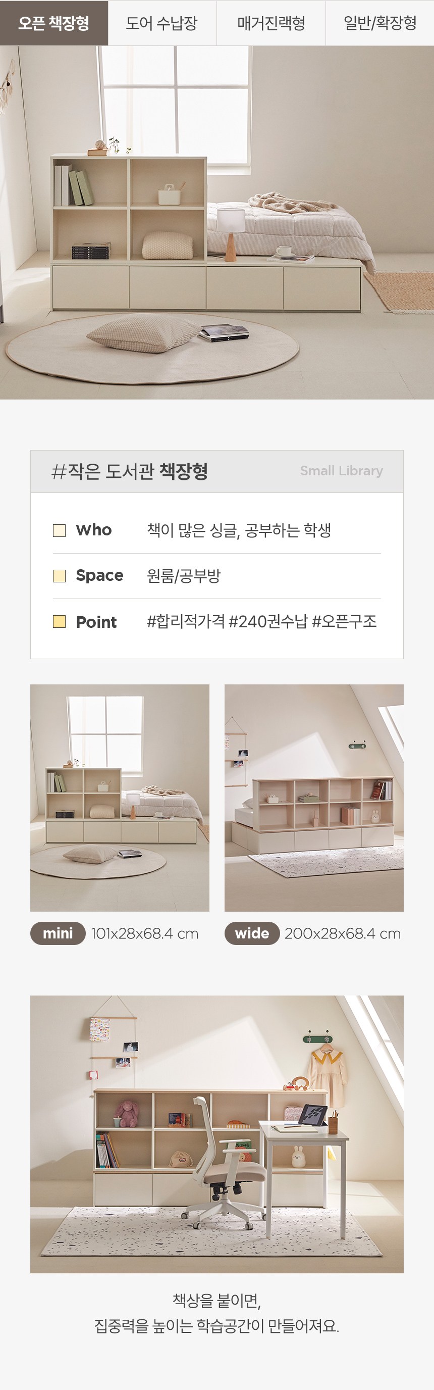 - 사이즈: 프레임(1400 x 2000 x 310 mm), 와이드책장(2000 x 280 x 684 mm)