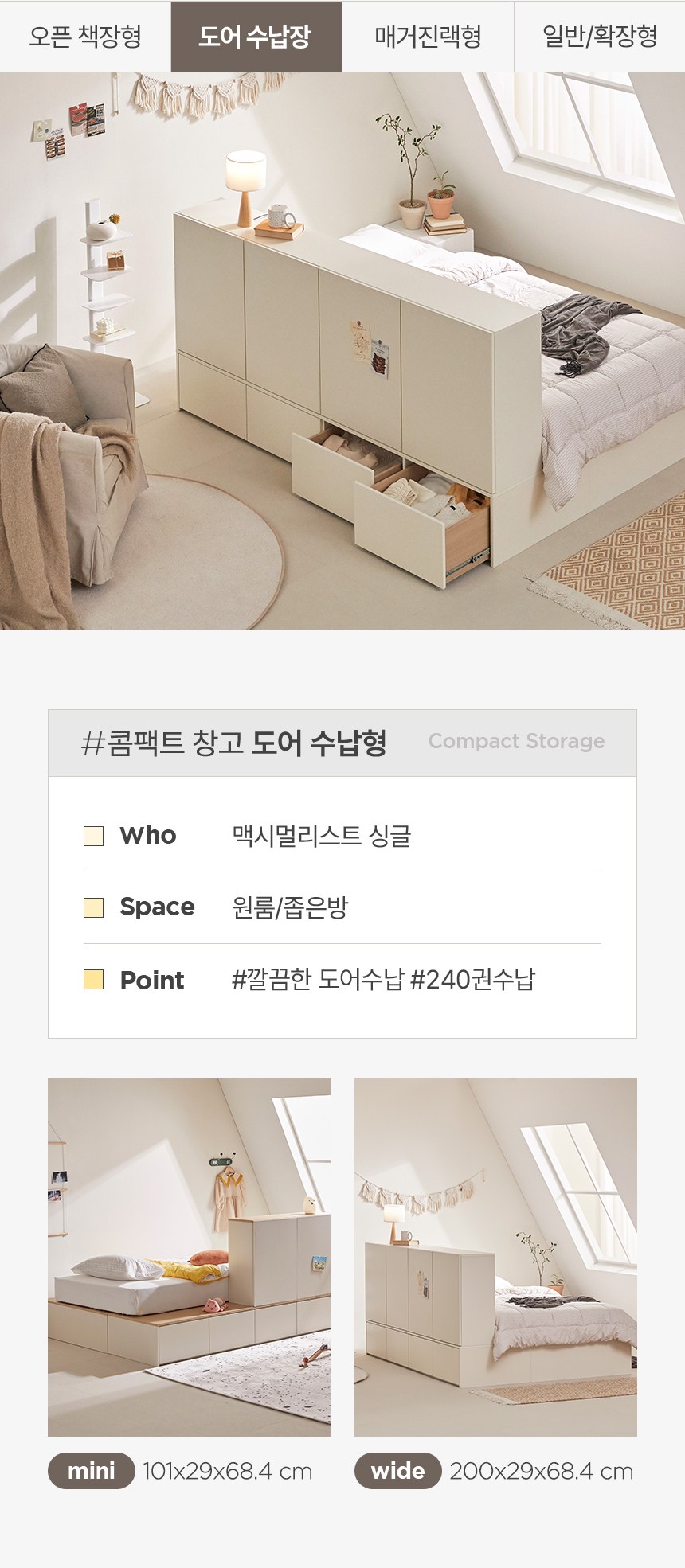 - 침대 프레임 타입: 수납형