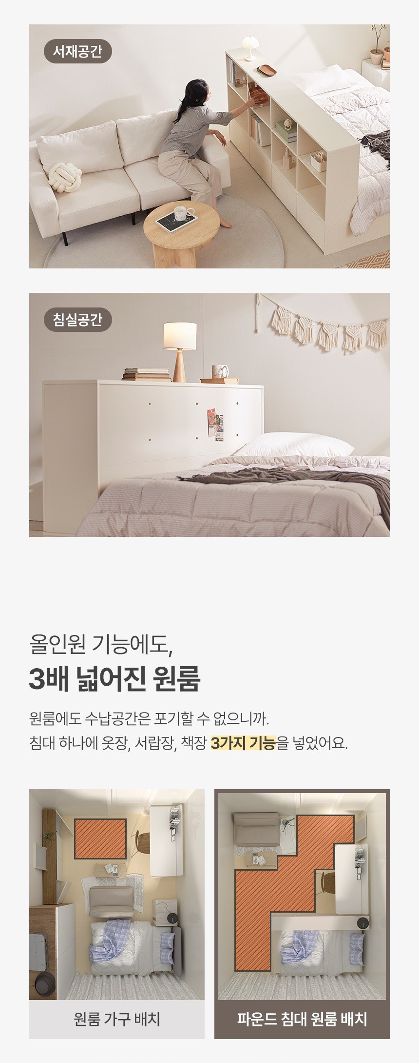 포더홈 파운드 확장형 수납 침대 프레임 + 와이드 책장 세트 방문설치