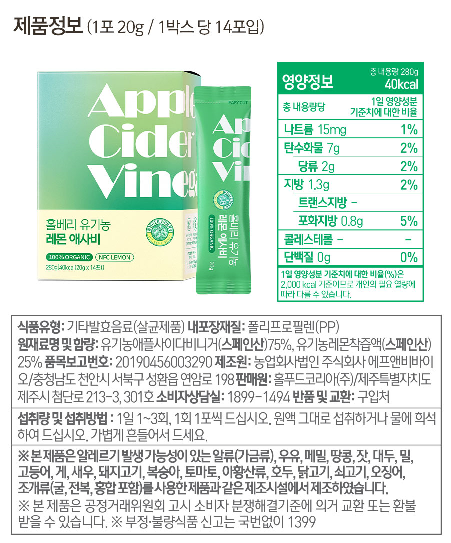 | 포장단위별 내용물의 용량(중량), 수량 | 14회분 x 2개 | 원재료명 및 함량 | 컨텐츠 참조 |