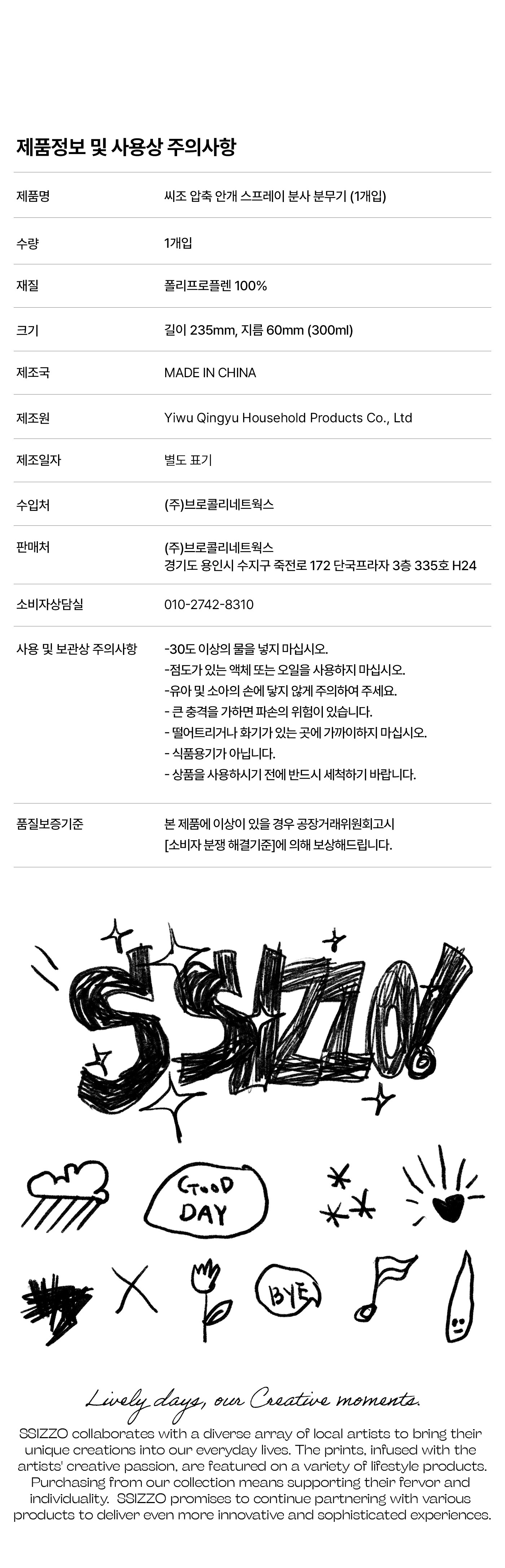 | 제조국(원산지) | 중국 | 제조자(수입자) | Yiwu Qingyu Household Products Co.,Ltd / (주)브로콜리 네트웍스 |