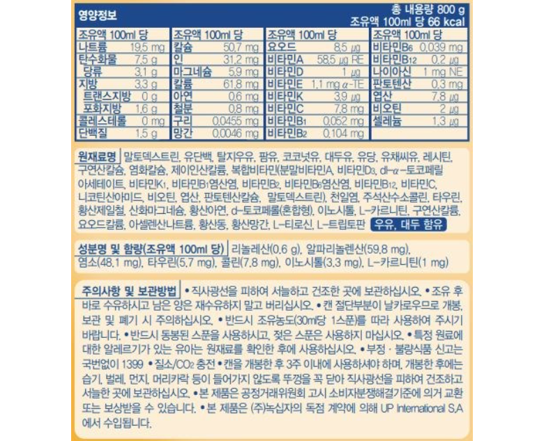 - 분유포장형태: 통