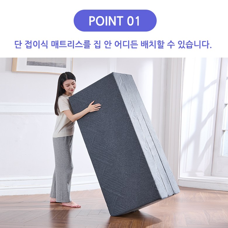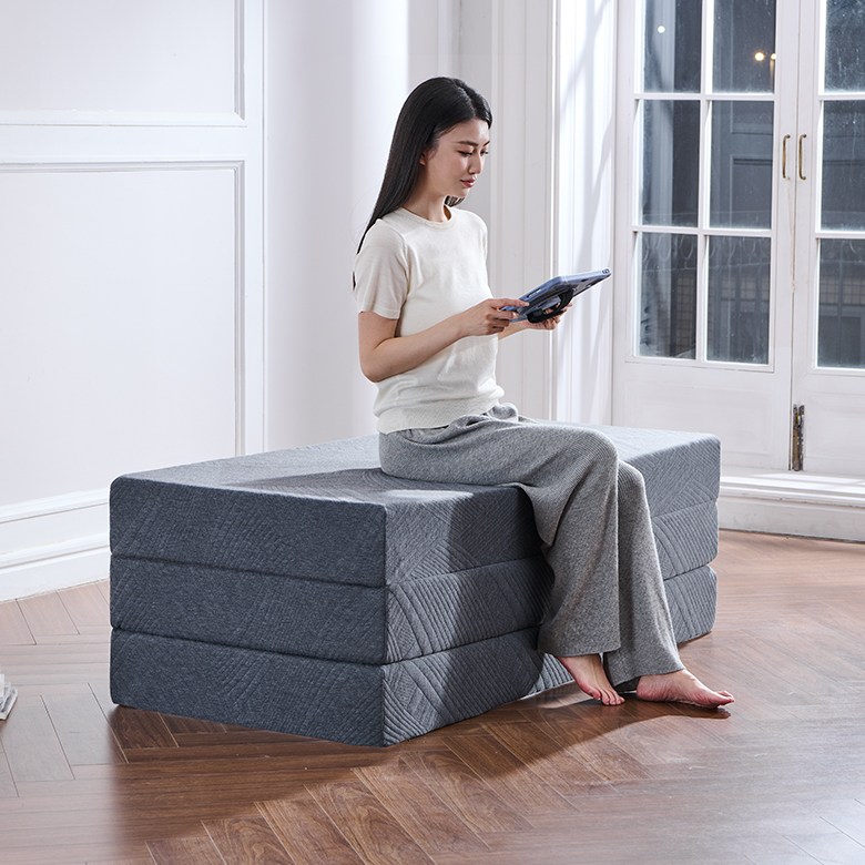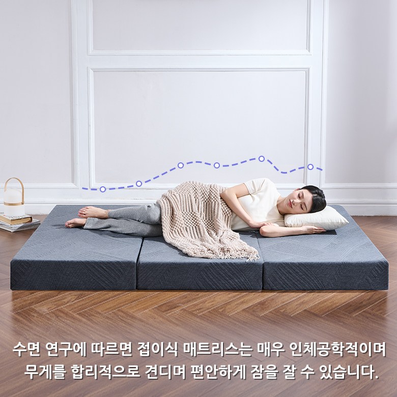 바쁜 하루를 마치고 집에 돌아와 3단 접이식 매트리스를 펼치세요