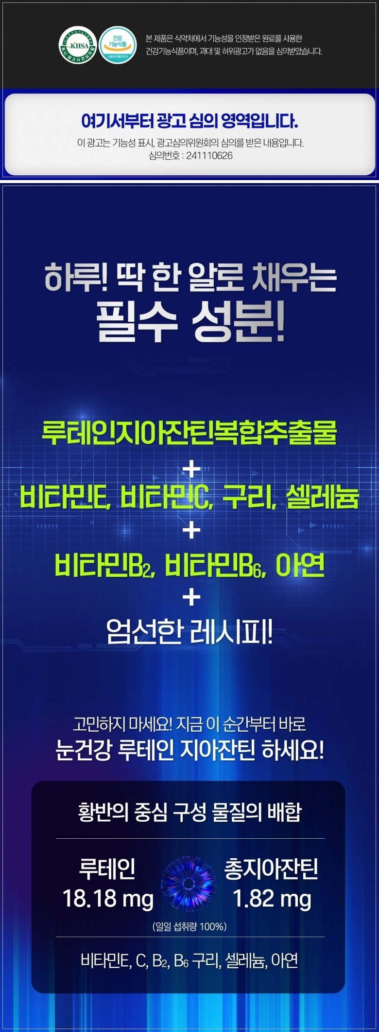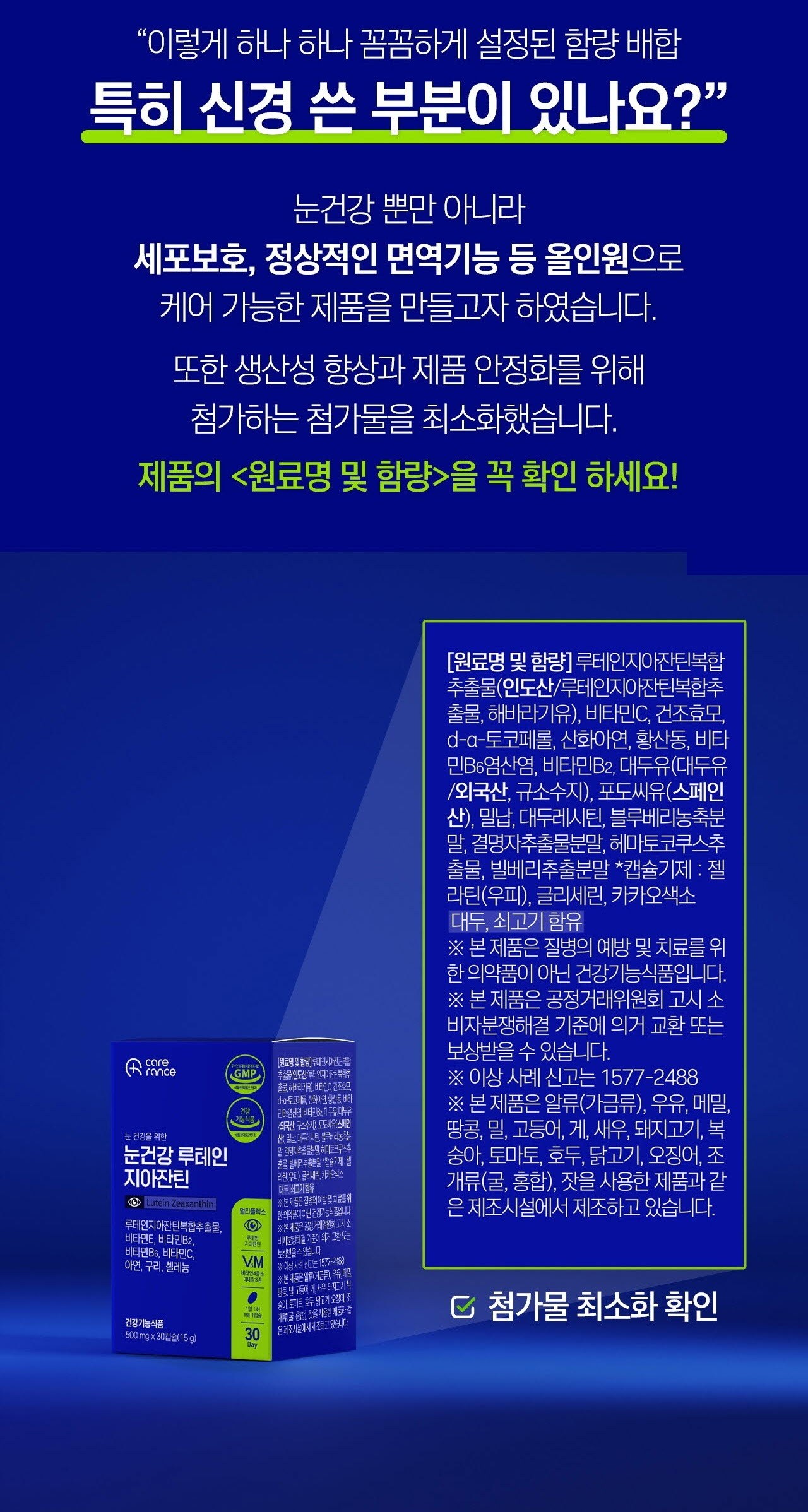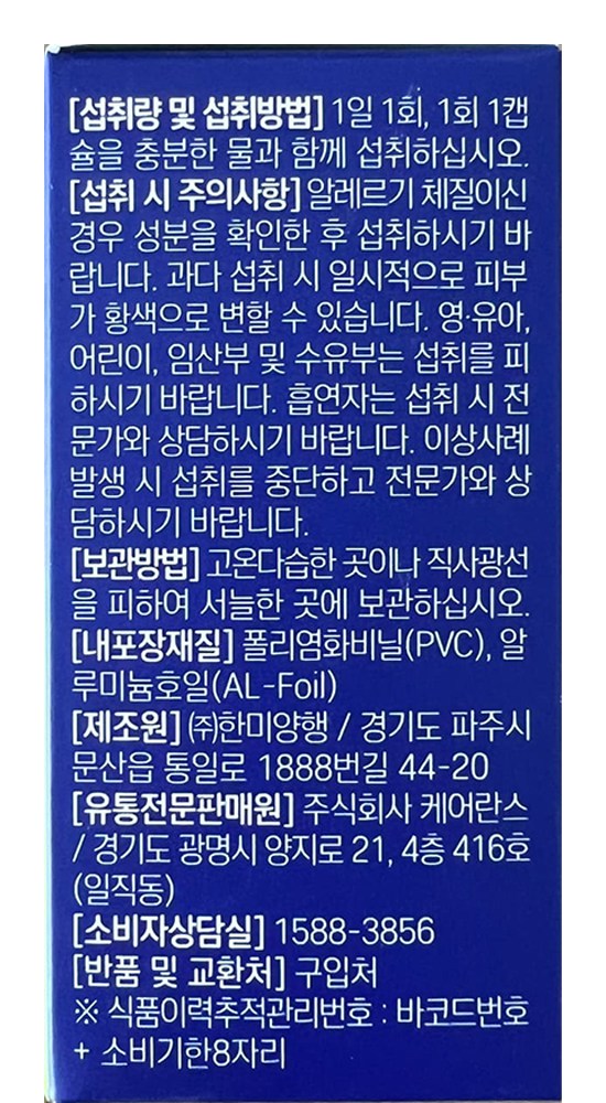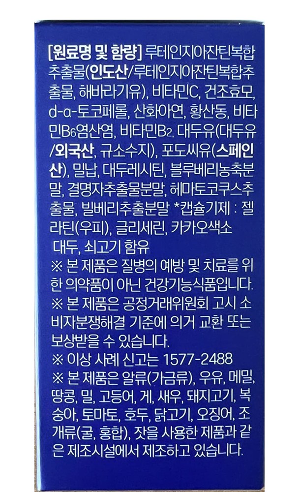 | 제품명 | 눈건강 루테인 지아잔틴 | 제조업소의 명칭과 소재지 | 컨텐츠참조 |