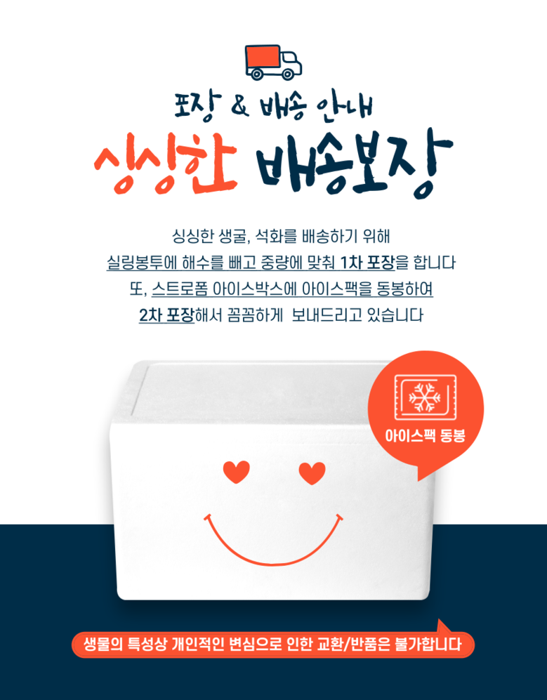 | 배송방법 | 신선/냉장/냉동 | 배송비 | 무료배송 - 도서산간 지역 배송불가 |