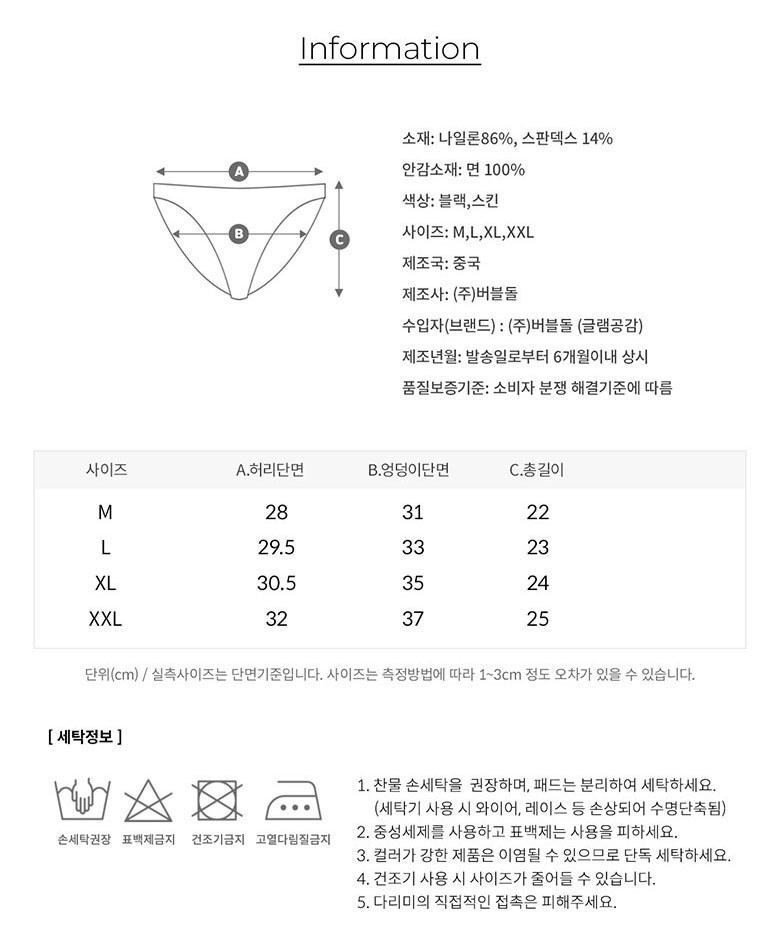 | 제조국 | 중국 | 세탁방법 및 취급시 주의사항 | 컨텐츠 참조 |
