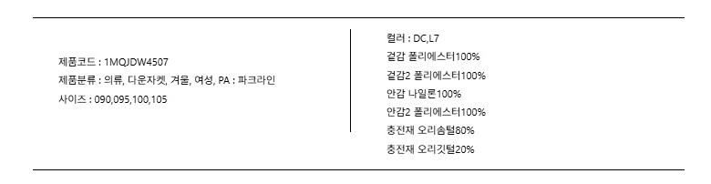 | 제조국 | 상품 상세페이지 참조 | 세탁방법 및 취급시 주의사항 | 상품 상세페이지 참조 |