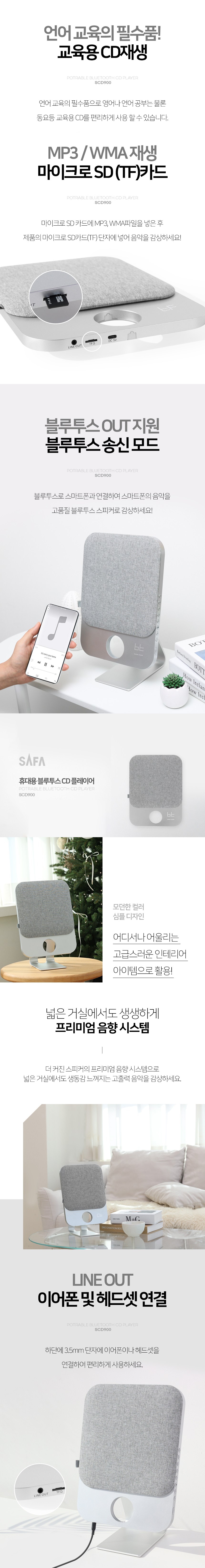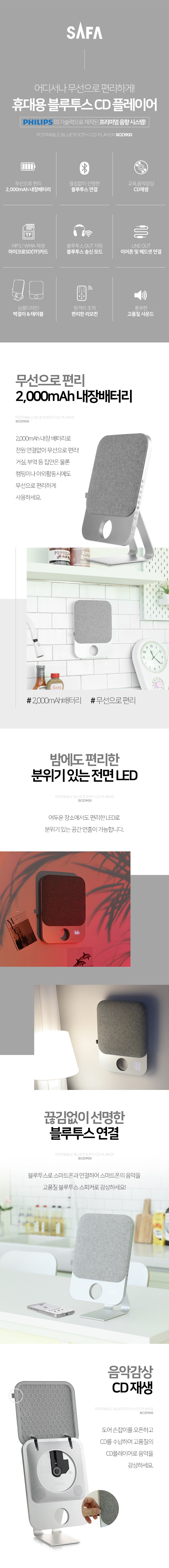 사파 프리미엄 휴대용 블루투스 무선충전식 CD플레이어