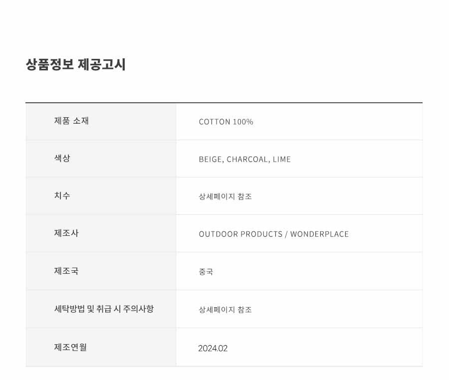 | 제조국 | 컨텐츠참조 | 세탁방법 및 취급시 주의사항 | 컨텐츠참조 |