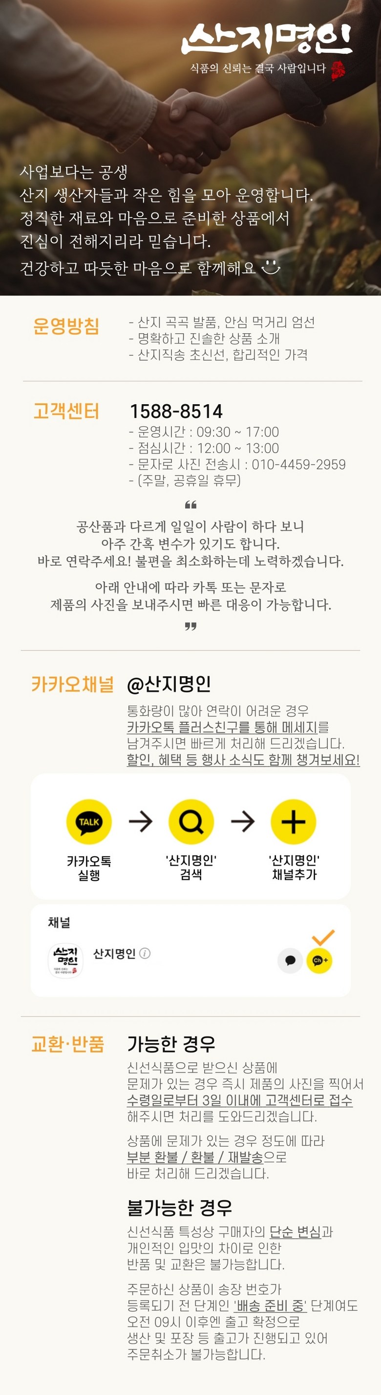 - ㆍ모니터 해상도의 차이로 인해 색상이나 이미지가 실제와 달라, 고객이 단순 변심으로 교환/반품을 무료로 요청하는 경우