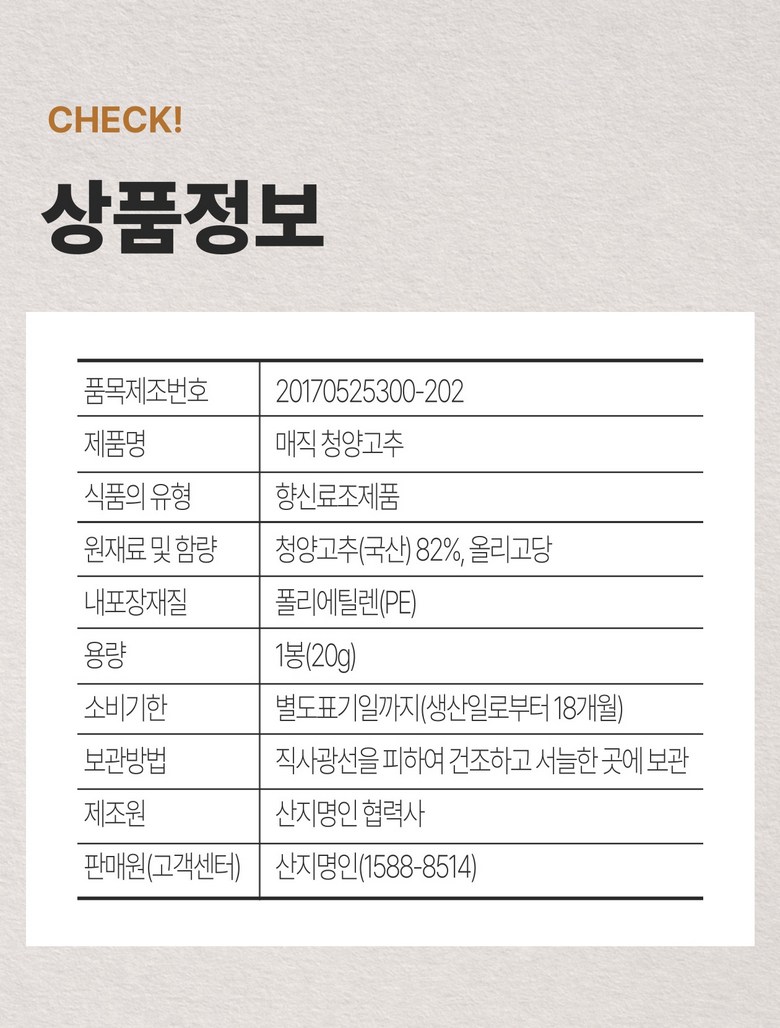 | 제품명 | 상품 상세페이지 참조 | 식품의 유형 | 상품 상세페이지 참조 |