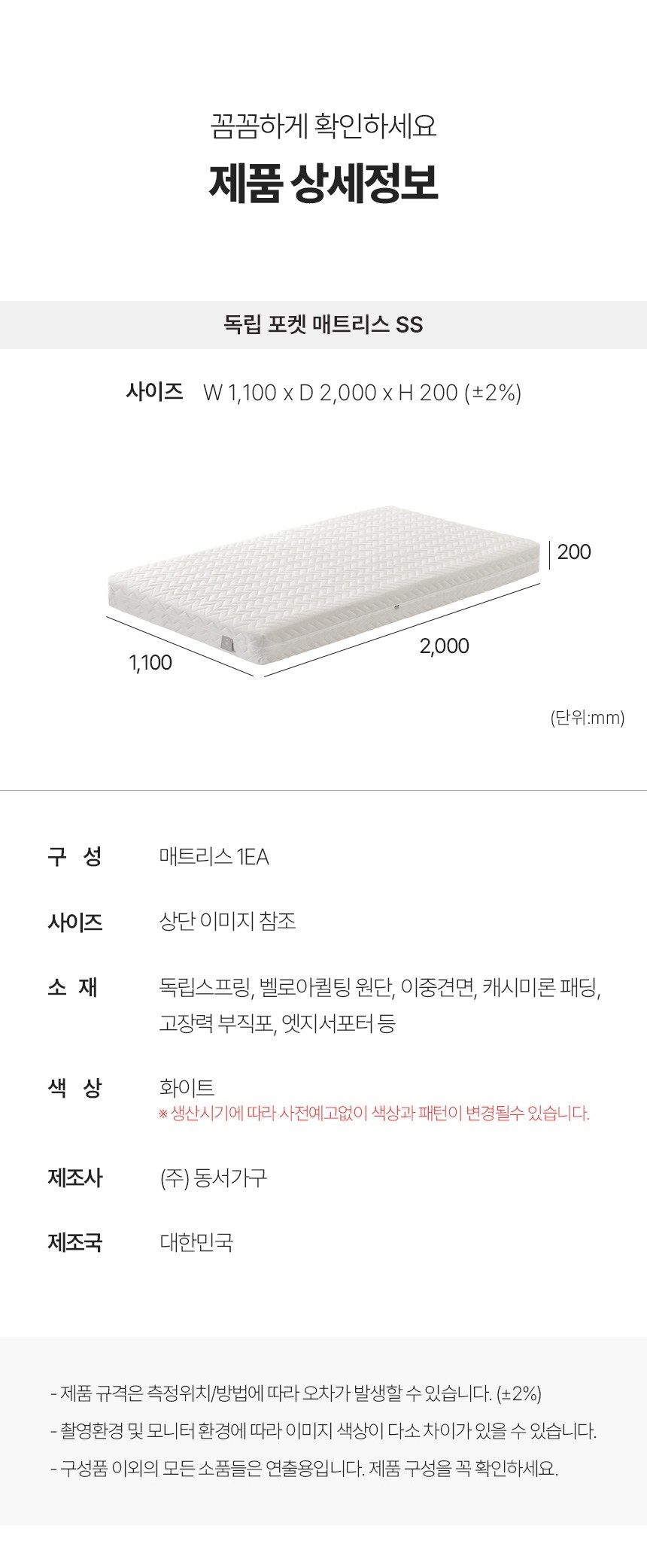 | 주요 소재 | 컨텐츠 참조 | 제조자(수입자) | 본품 : (주)동서가구ㅣ매트리스 : (주)동서가구 |