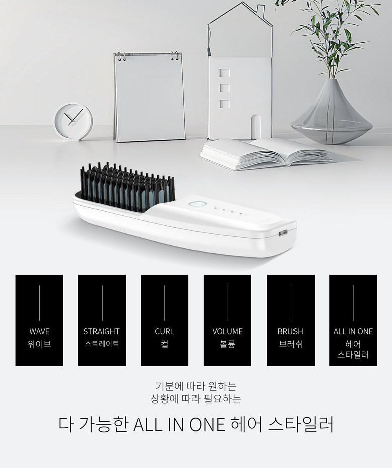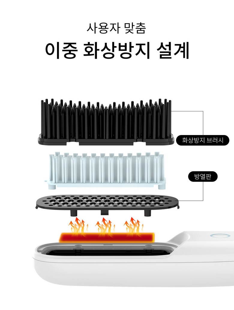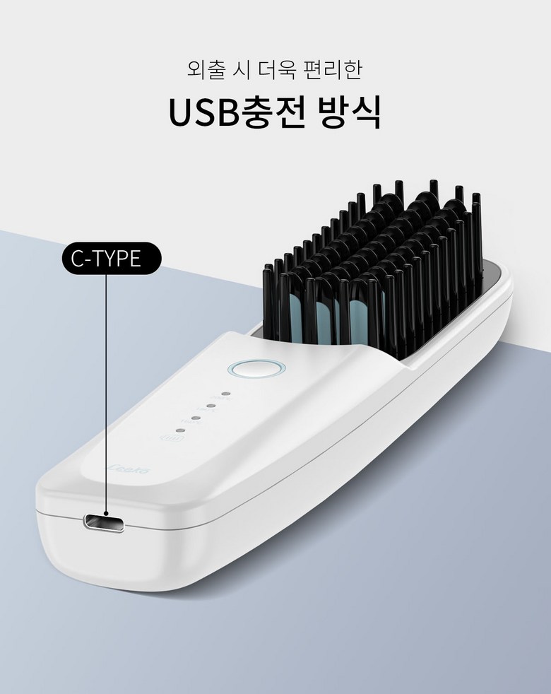 휴대용 무선 빗 고데기 충전식 3단계 온도조절 스트레이트 헤어 브러쉬 여행용 미니 빠른 예열 고데기