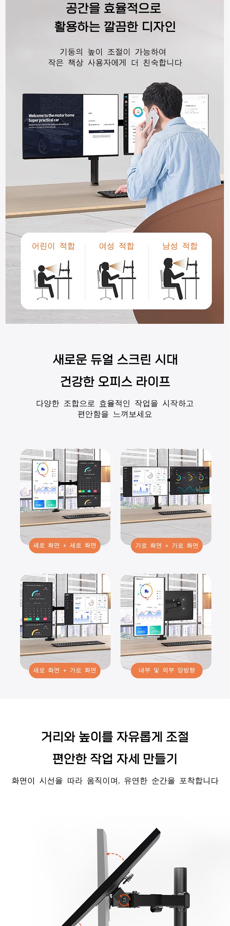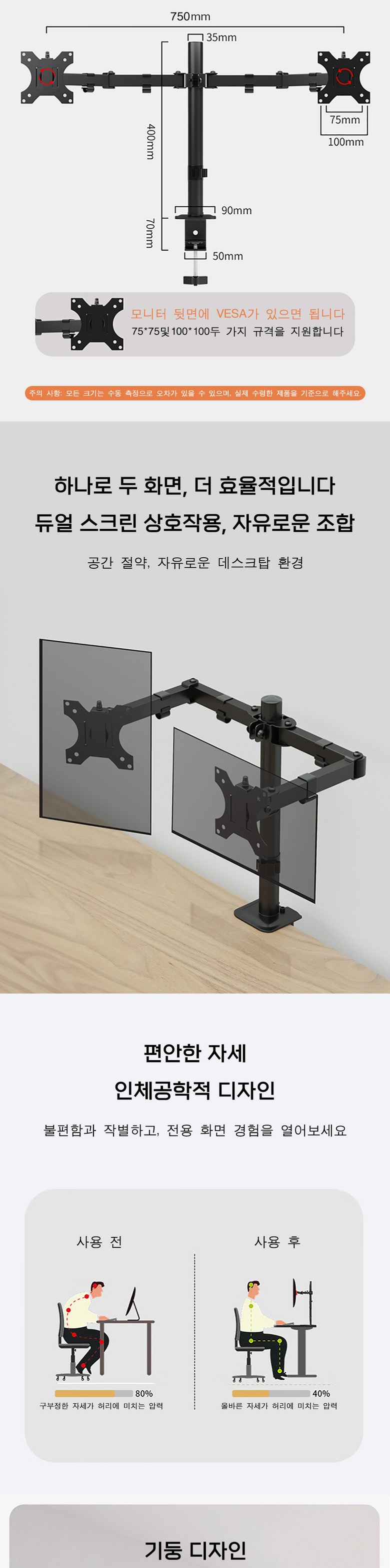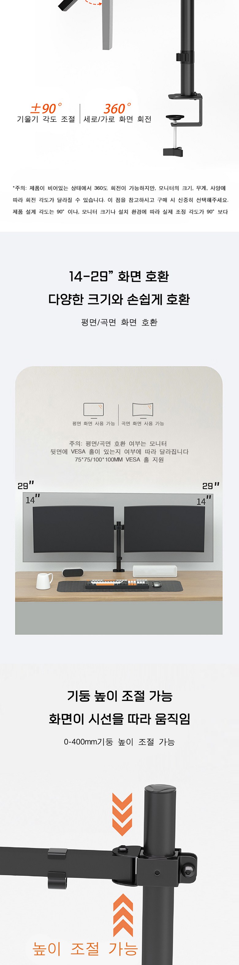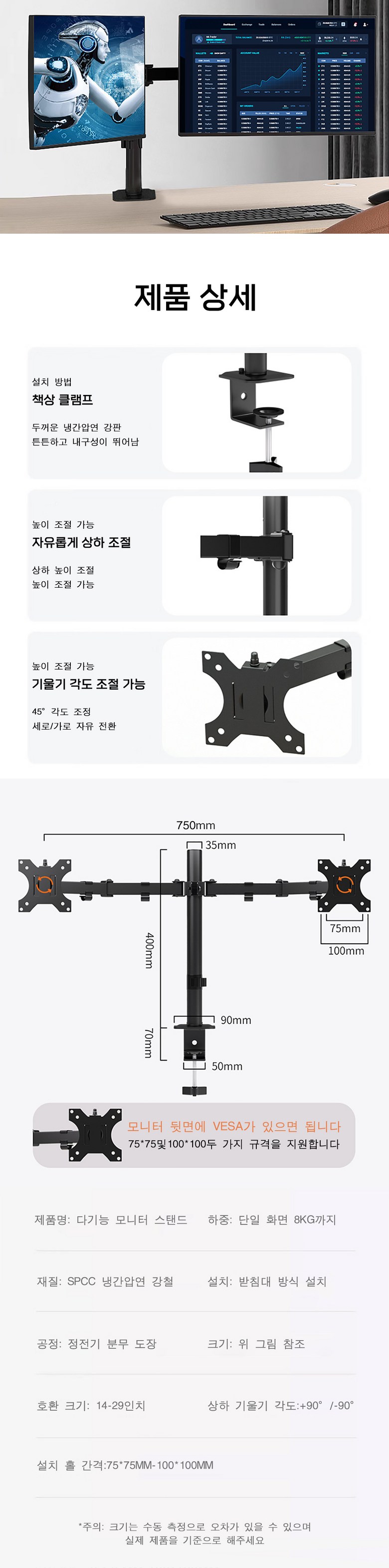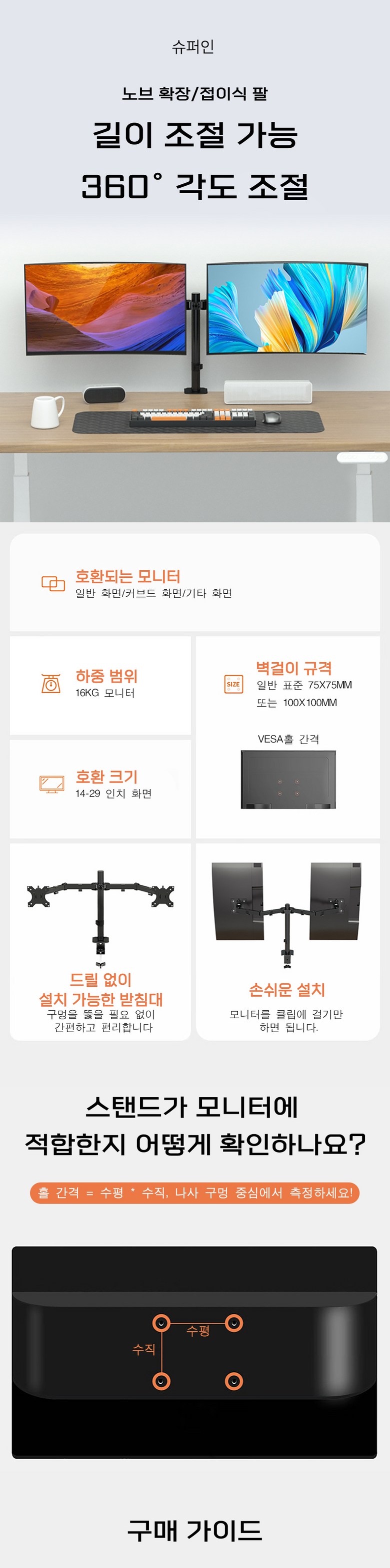 | 품명 및 모델명 | 슈퍼인 높이조절 각도조절 3단 관절 듀얼모니터암 | 인증/허가 사항 | 해당없음 |