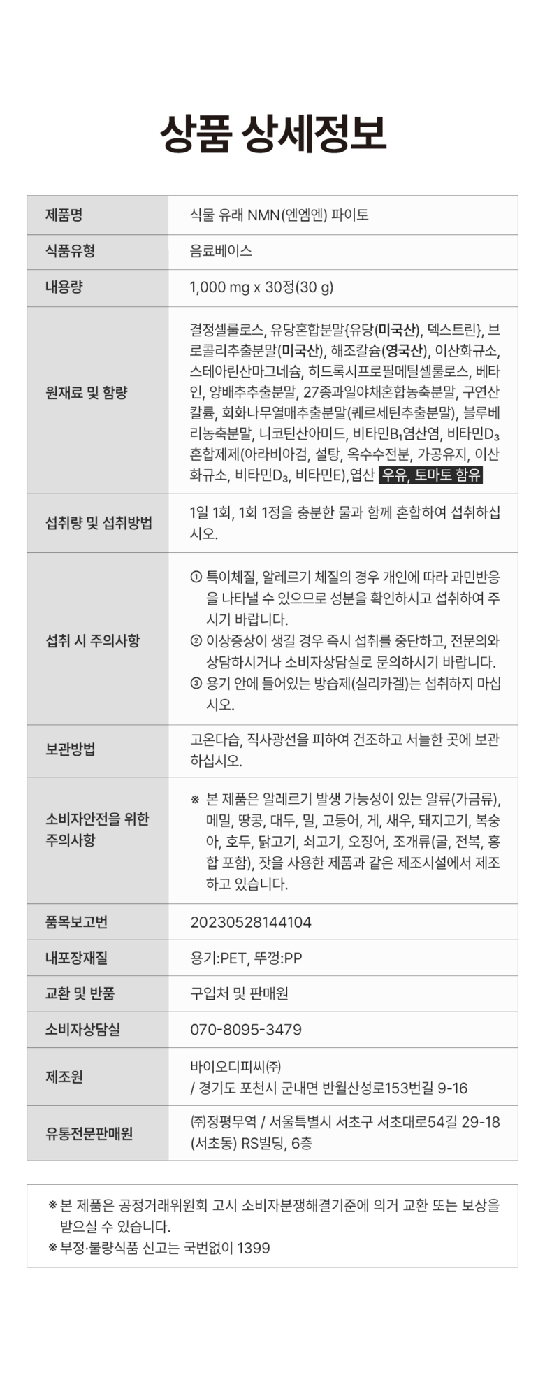 | 원재료명 및 함량 | 상품 상세페이지 참조 | 영양성분 | 상품 상세페이지 참조 |