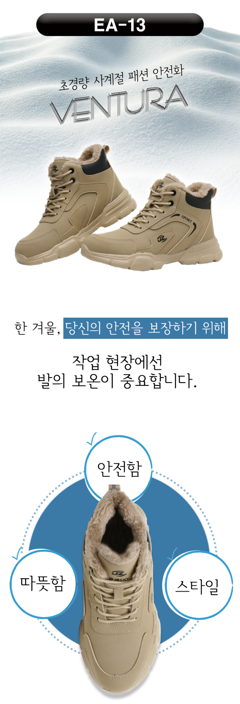 디아즈 방한화 6인치 발볼넓은 경량 작업화 보아털 EA-13