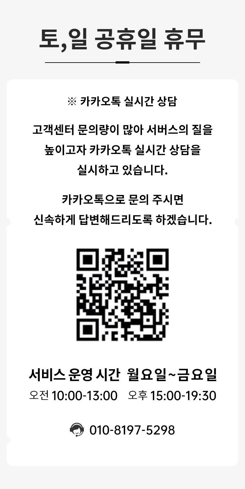 - ㆍ모니터 해상도의 차이로 인해 색상이나 이미지가 실제와 달라, 고객이 단순 변심으로 교환/반품을 무료로 요청하는 경우