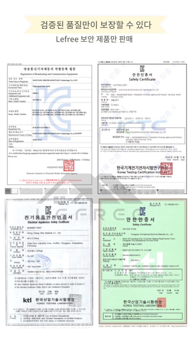 | 품명 및 모델명 | 네잎클로버 고속 헤어드라이어 | KC 인증정보 | HU073642-24001 |