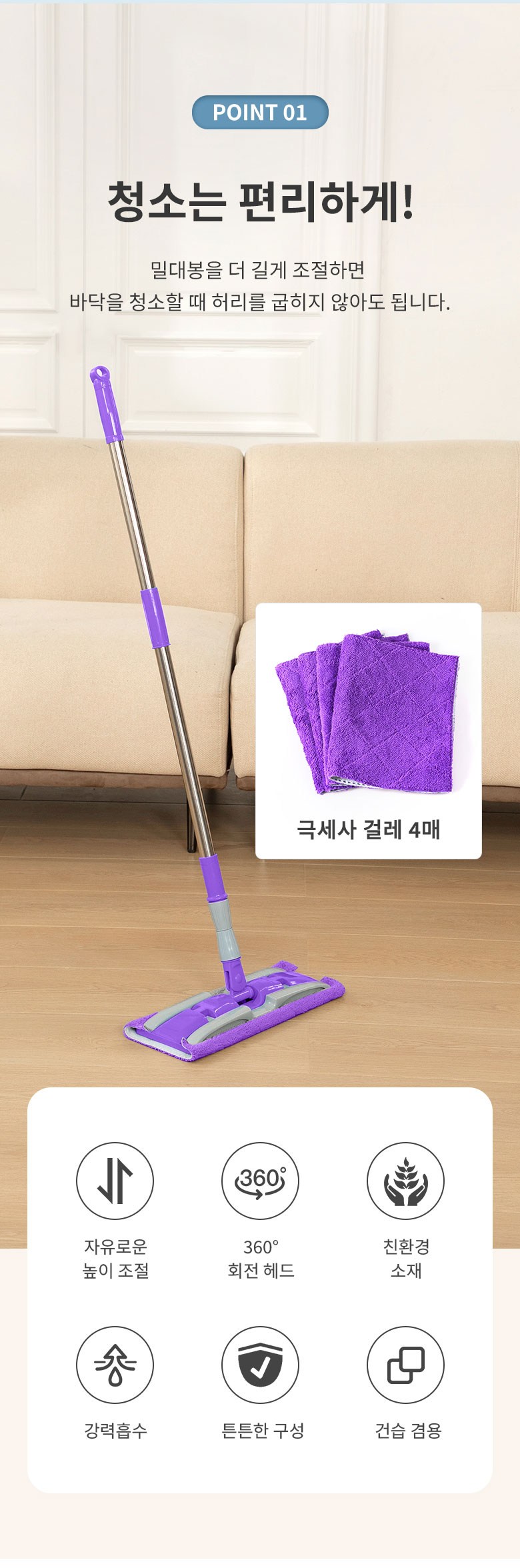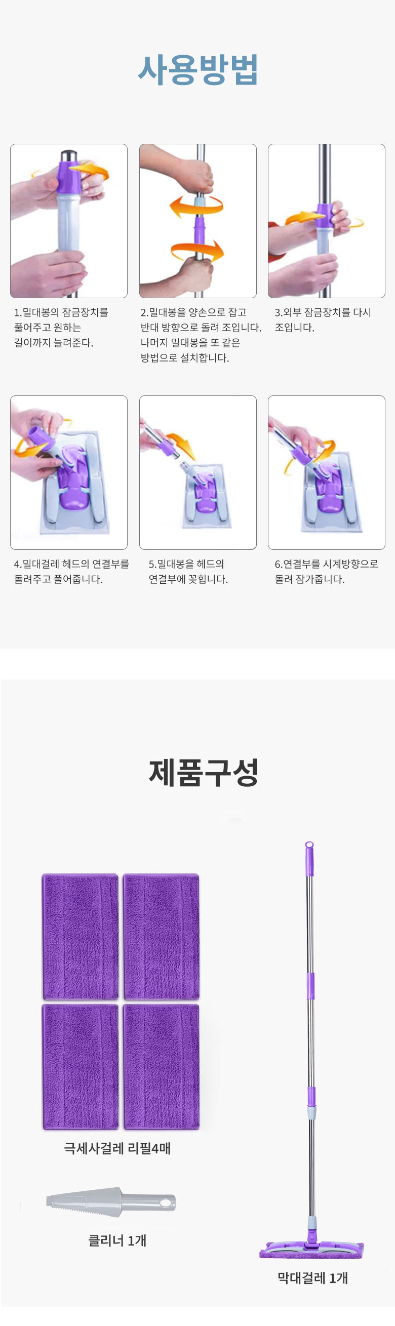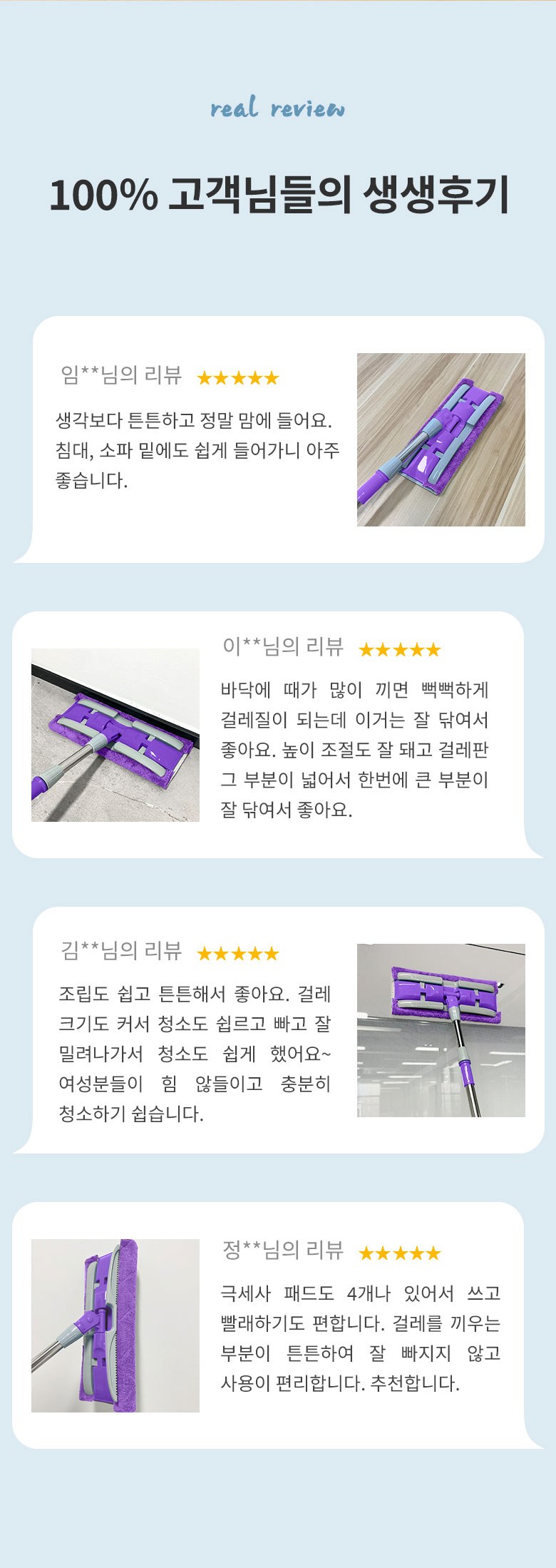 - 밀대 구성: 밀대+리필걸레4매+클리너1개