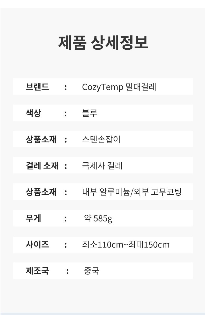 | 품명 및 모델명 | CozyTemp 밀대걸레 | 인증/허가 사항 | 법에 의한 인증·허가 등을 받았음을 확인할 수 있는 경우 그에 대한 사항 |