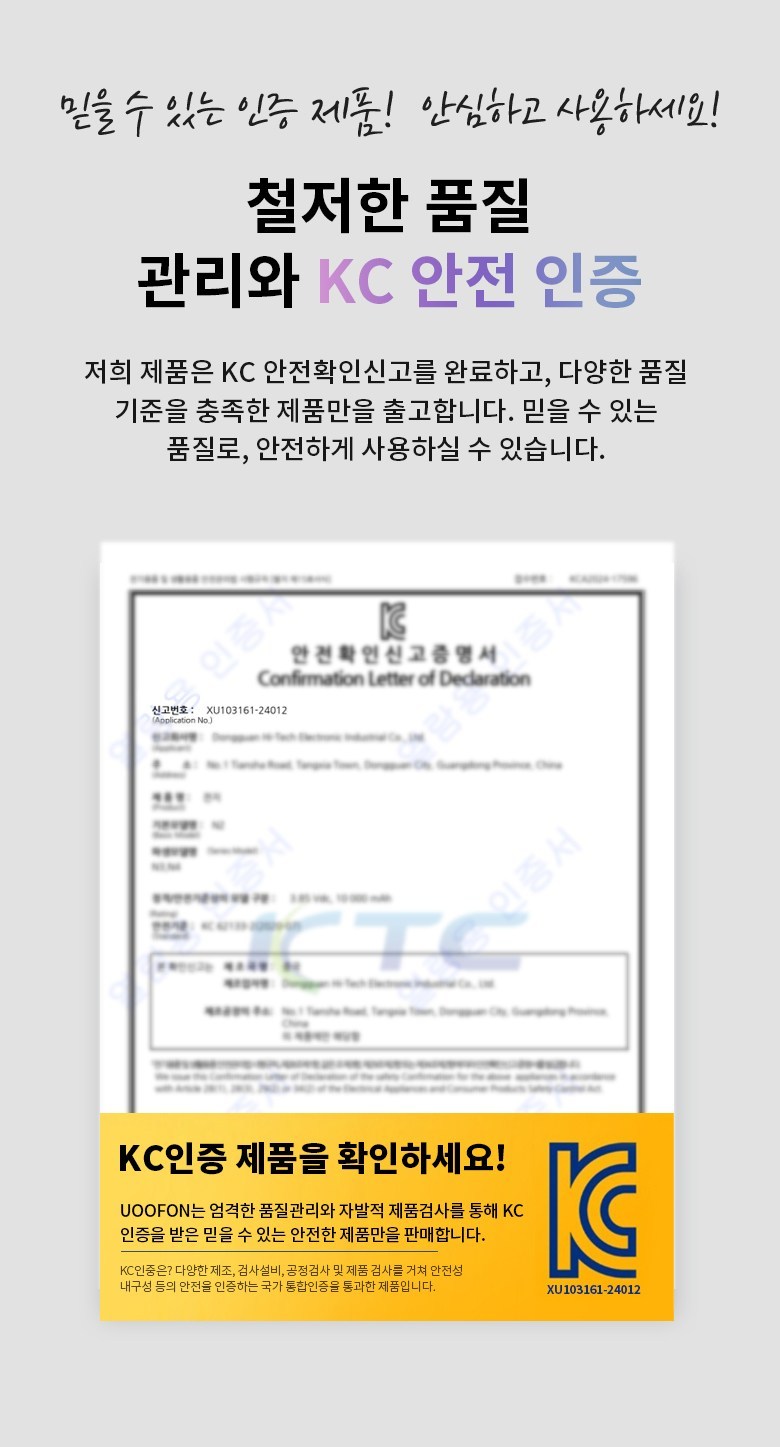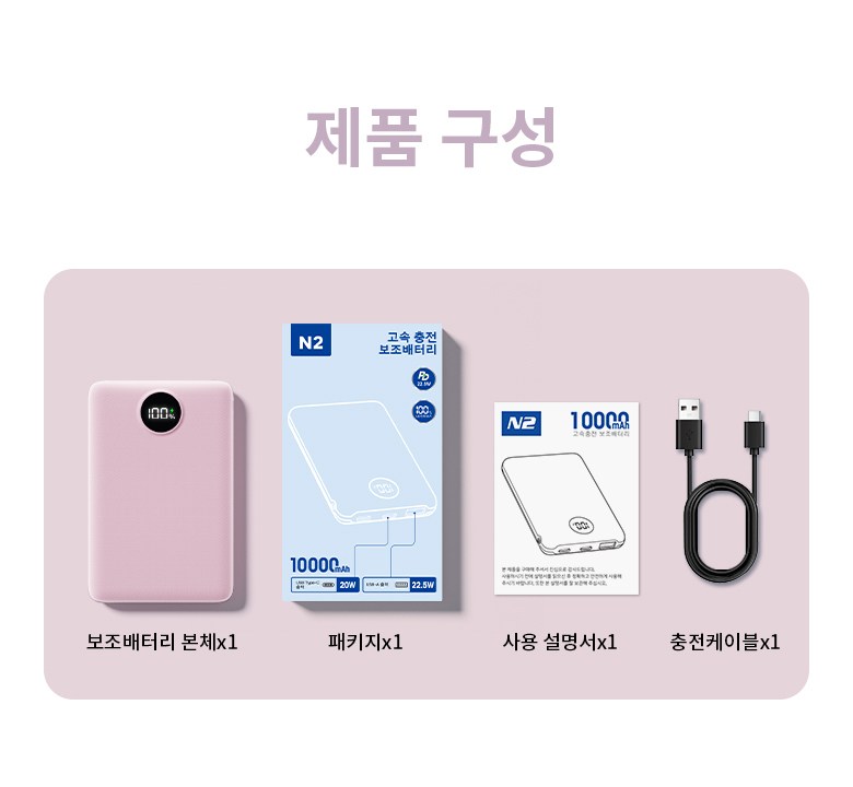 UOOFON 고속충전 미니 보조배터리 10000mAh PD 22.5W QC3.0 LED 잔량표시 포켓 휴대용+20W C타입 케이블