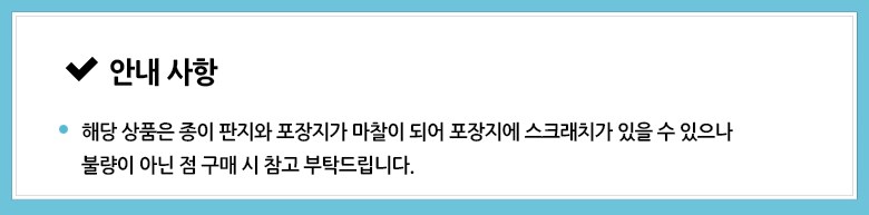 - ㆍ교환/반품에 관한 일반적인 사항은 판매자가 제시사항보다 관계법령이 우선합니다.