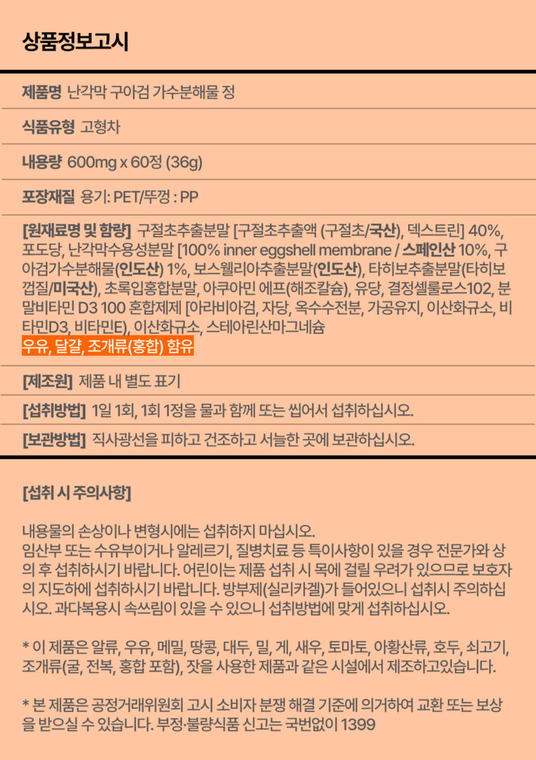 | 제조연월일, 소비기한 또는 품질유지기한 | 상품 상세페이지 참조 | 세부 품목군별 표시사항 | 상품 상세페이지 참조 |
