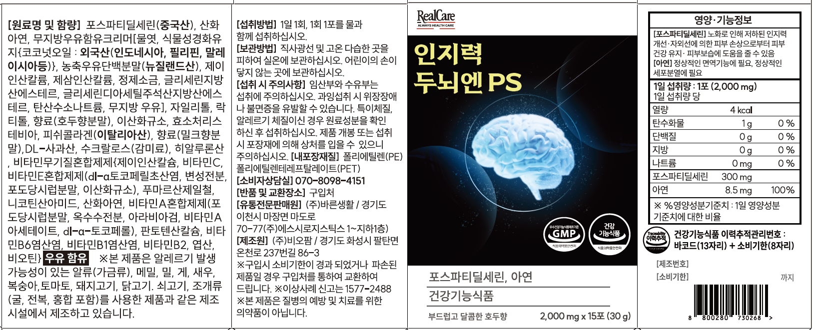 | 제품명 | 인지력 두뇌엔PS | 제조업소의 명칭과 소재지 | 컨텐츠 참조 |