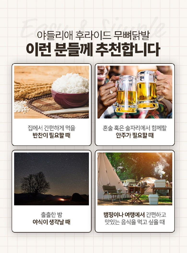 | 제품명 | 야들리애 닭발튀김 | 식품의 유형 | 상품 상세페이지 참조 |