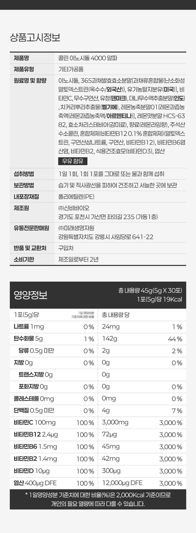| 원재료명 및 함량 | 상품 상세페이지 참조 | 영양성분 | 상품 상세페이지 참조 |