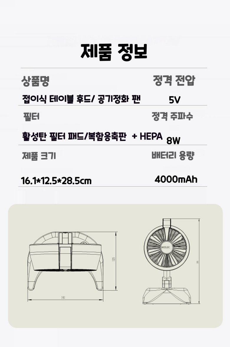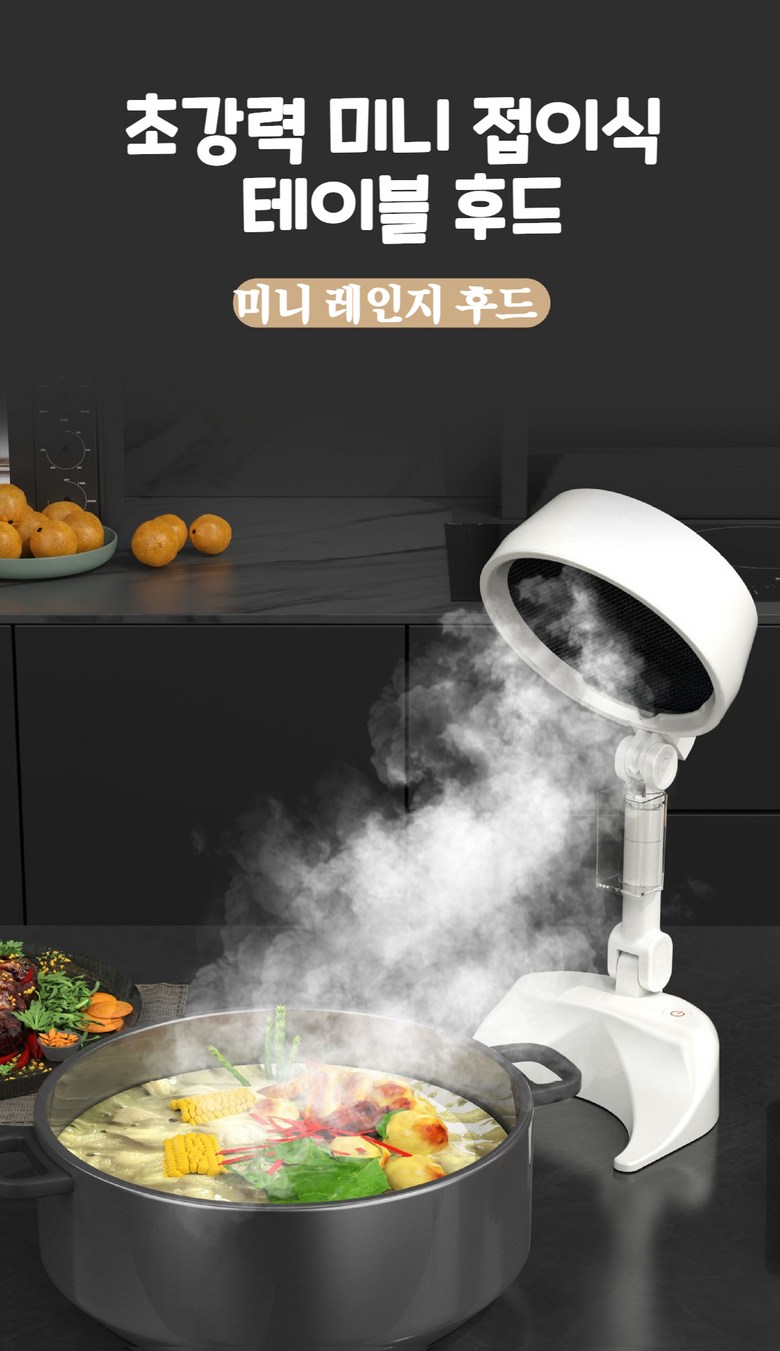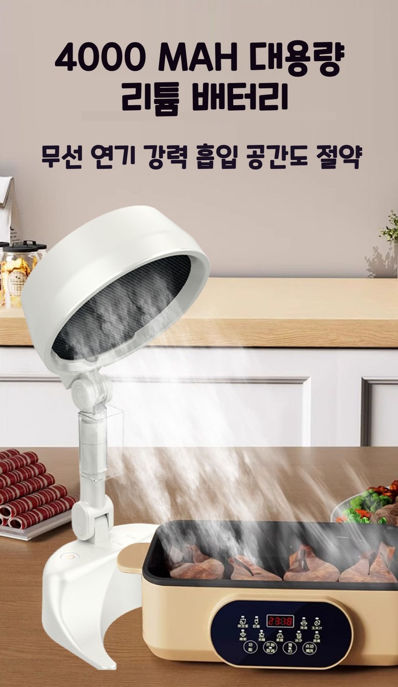 [최신버전]초강력 무선 충전식 미니후드 이동식후드 주방후드 휴대용 테이블 후드 가정용 식당 PC방용 캠핑용 후드 연기빼기 냄새 빼기 접이식 레인지후드 각도 높이조절 분리세척가능