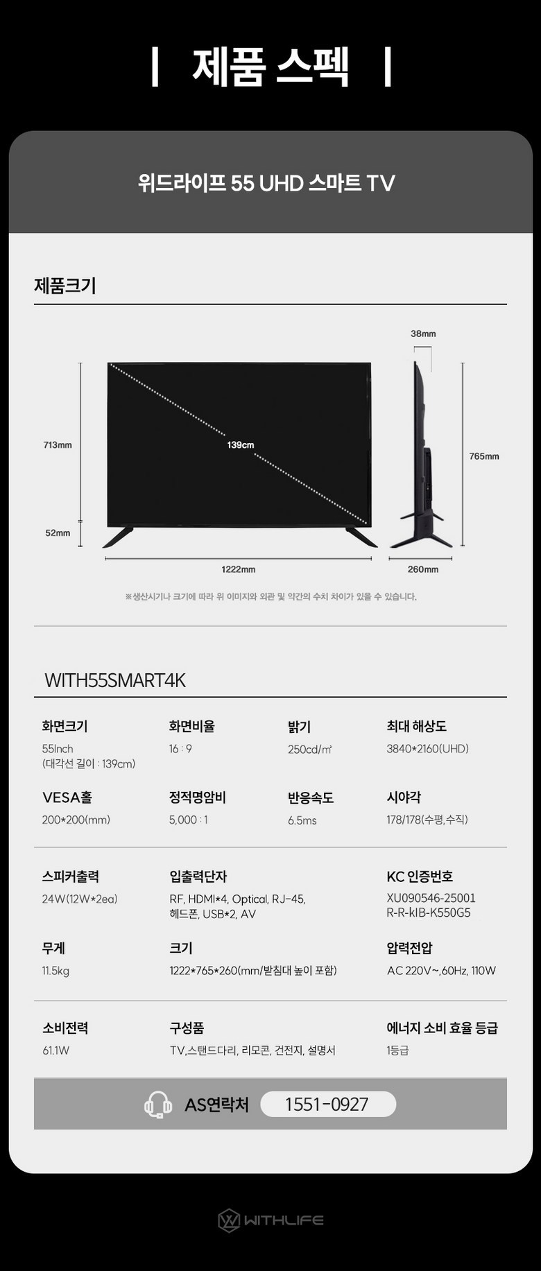 | 정격전압, 소비전력 | AC 220V~,60Hz,110W | 에너지소비효율등급 | 1등급 |