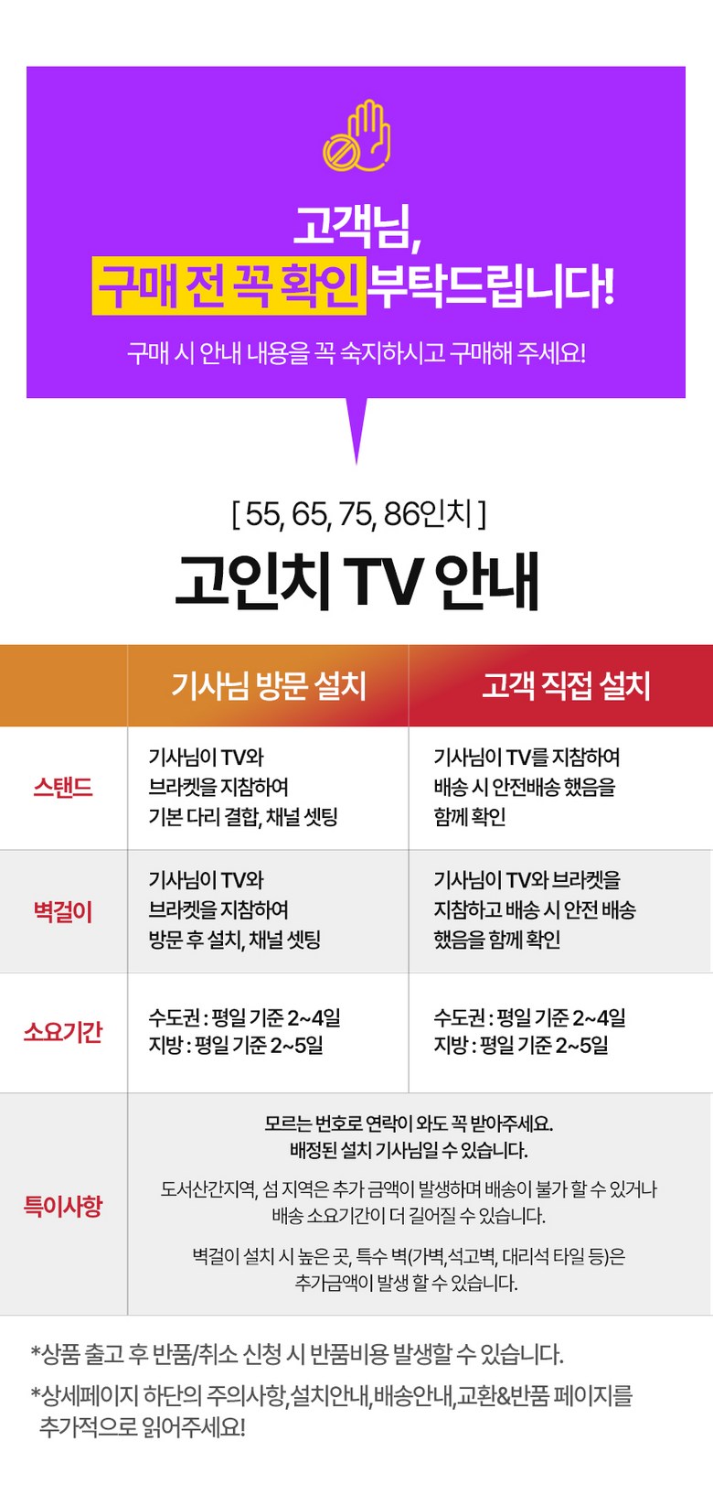 - ㆍ제조사의 사정 (신모델 출시 등) 및 부품 가격 변동 등에 의해 무료 교환/반품으로 요청하는 경우