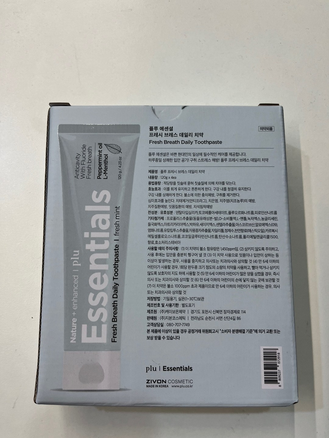 | 품명 및 모델명 | 플루 프레시 브레스 데일리 치약 | 인증/허가 사항 | 의약외품 |