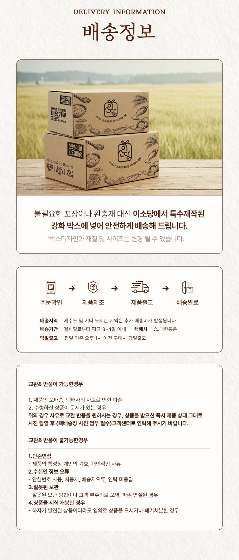 - ㆍ모니터 해상도의 차이로 인해 색상이나 이미지가 실제와 달라, 고객이 단순 변심으로 교환/반품을 무료로 요청하는 경우