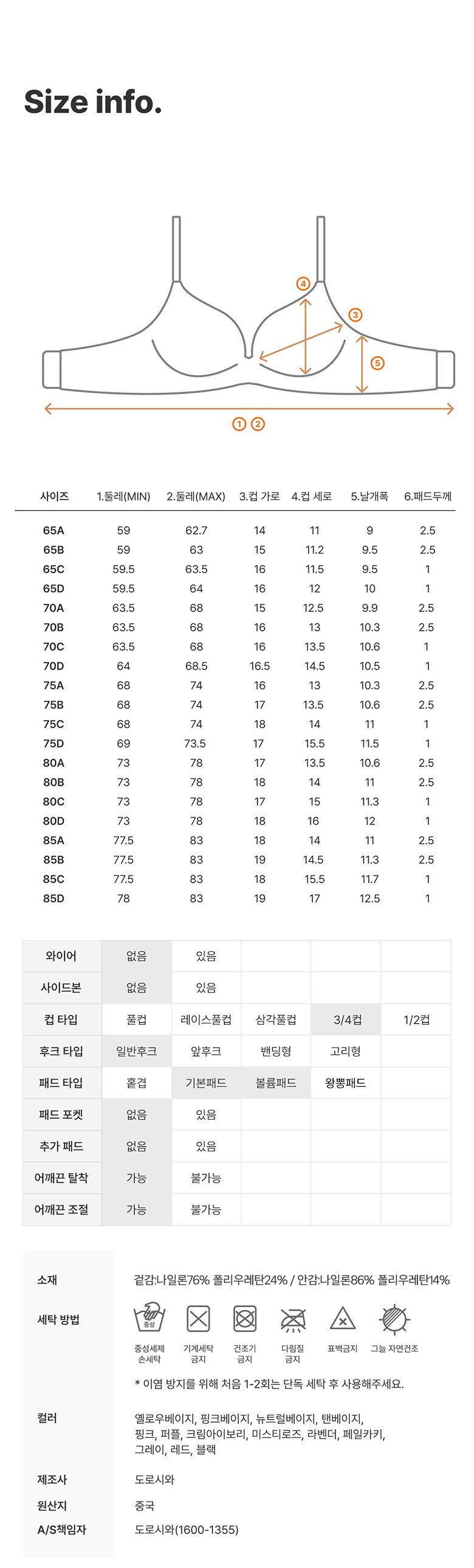 - 사이즈: 65A~D이하(US30AA~D이하)