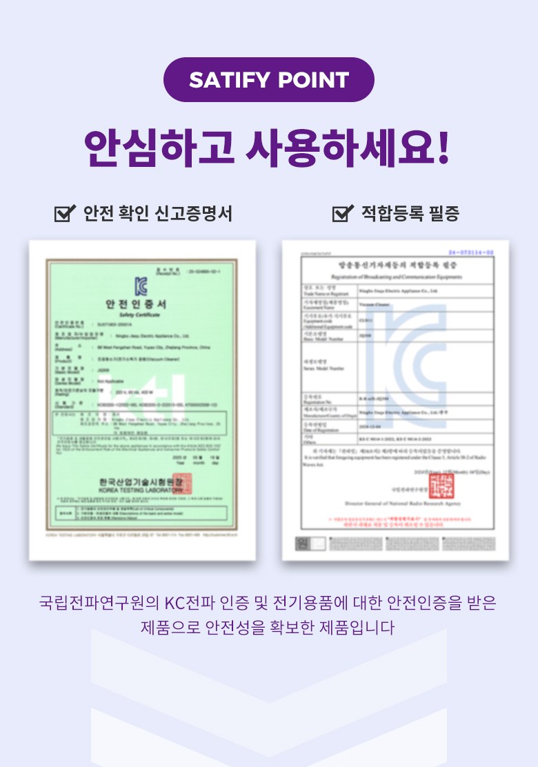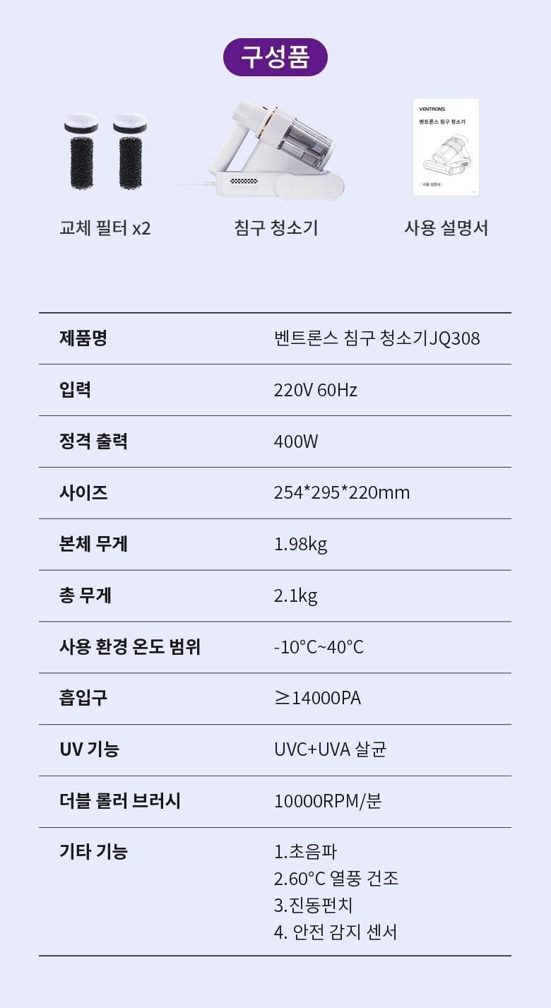 | 품명 및 모델명 | 벤트론스 침구청소기 JQ308 | KC 인증정보 | R-R-nJE-JQ308 |