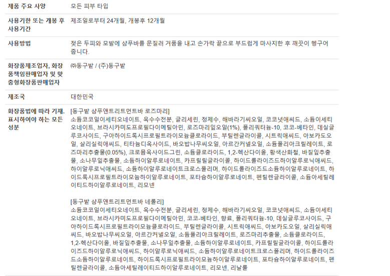 | 사용기한 또는 개봉 후 사용기간 | 상품 상세페이지 참조 | 사용방법 | 상품 상세페이지 참조 |
