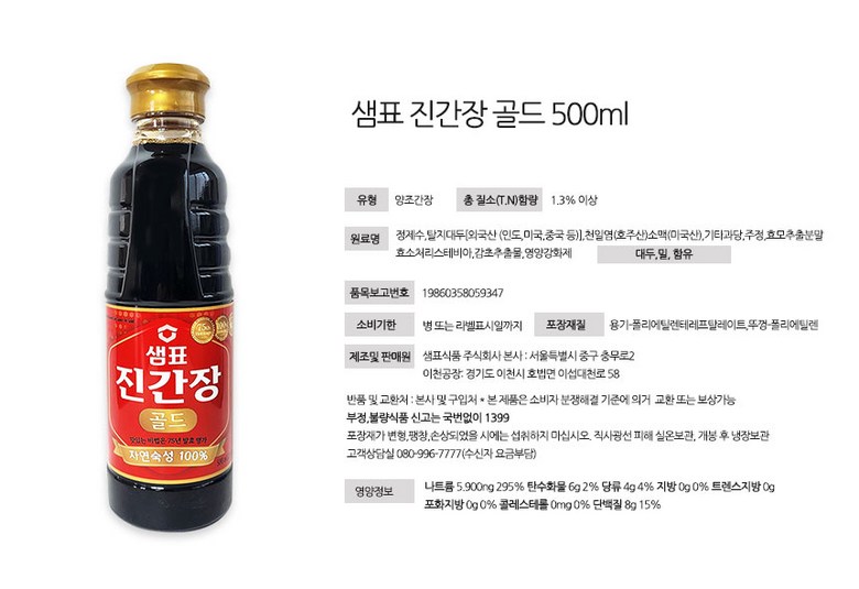 | 생산자 및 소재지 | 상품 상세페이지 참조 | 제조연월일, 소비기한 또는 품질유지기한 | 상품 상세페이지 참조 |