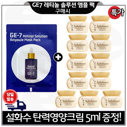 지이세븐_ 레티놀 앰플 // 마스크팩 구매/ (3매)+탄력영양크림 5ml x26개/ _총 130ml 세트구성.