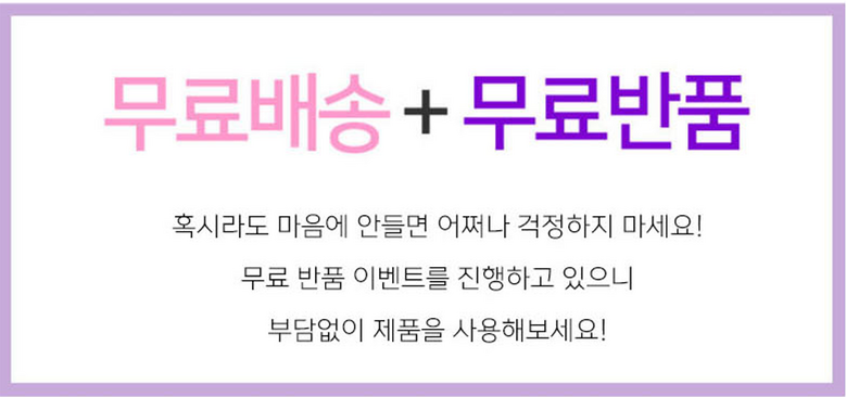 - ㆍ모니터 해상도의 차이로 인해 색상이나 이미지가 실제와 달라, 고객이 단순 변심으로 교환/반품을 무료로 요청하는 경우