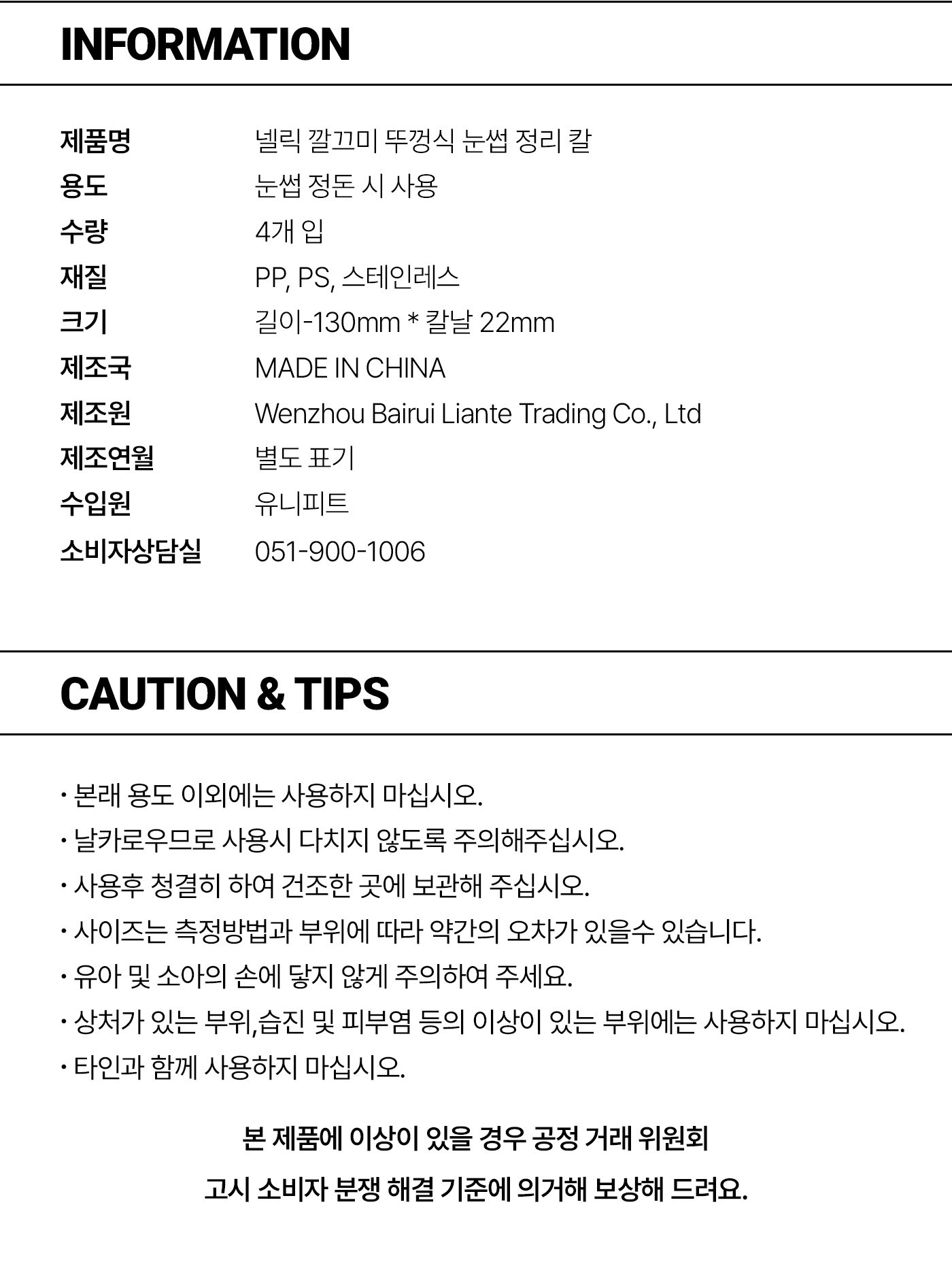 | 품명 및 모델명 | 넬릭 깔끄미 뚜껑식 눈썹 정리 칼 | 인증/허가 사항 | 해당없음 |