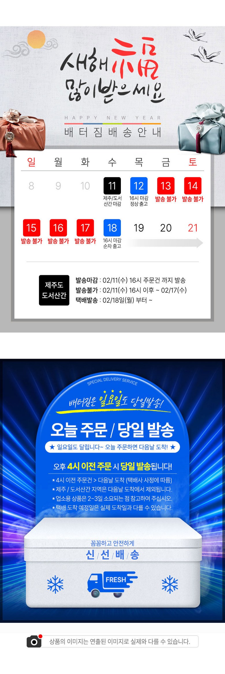 - ㆍ모니터 해상도의 차이로 인해 색상이나 이미지가 실제와 달라, 고객이 단순 변심으로 교환/반품을 무료로 요청하는 경우